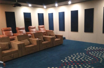 Home cinema, also called home theater or theater room. Home theater are audio-visual systems designed to achieve a theater-like experience in a room. Baba Interiors is a leader in home theater design and installation services in Delhi. We create customized home theater rooms for movie lovers in their homes. Our home theater room setup incorporates advanced installation design elements, including the creation of a room that isolates sound and provides a superior listening environment and a larger screen. If you want to enjoy your favorite movie like a theater or a cricket match like a playground, Baba Interiors provides the best home theater design, setup and installation service for you with comfortable seating arrangements, sound proofing, acoustic wall paneling and more. If you are looking for custom home theater room setup and installation in Delhi & NCR then we provide your complete solution for custom home theater room with acoustic treatment.
